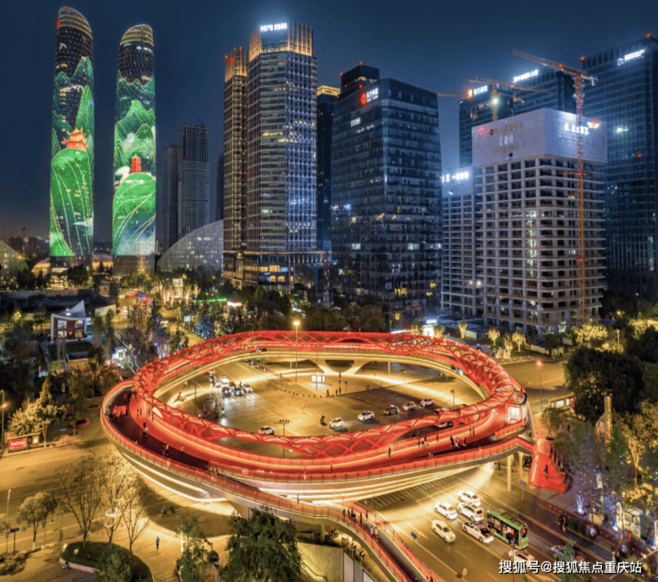 双子塔、交子之环,成都近两年新晋打卡网红圣地。两者对望,双塔一环的养眼美景,是交融观景、歇息、暂时展览、时装秀、街头扮演等愈加多元化的“交子日子”。